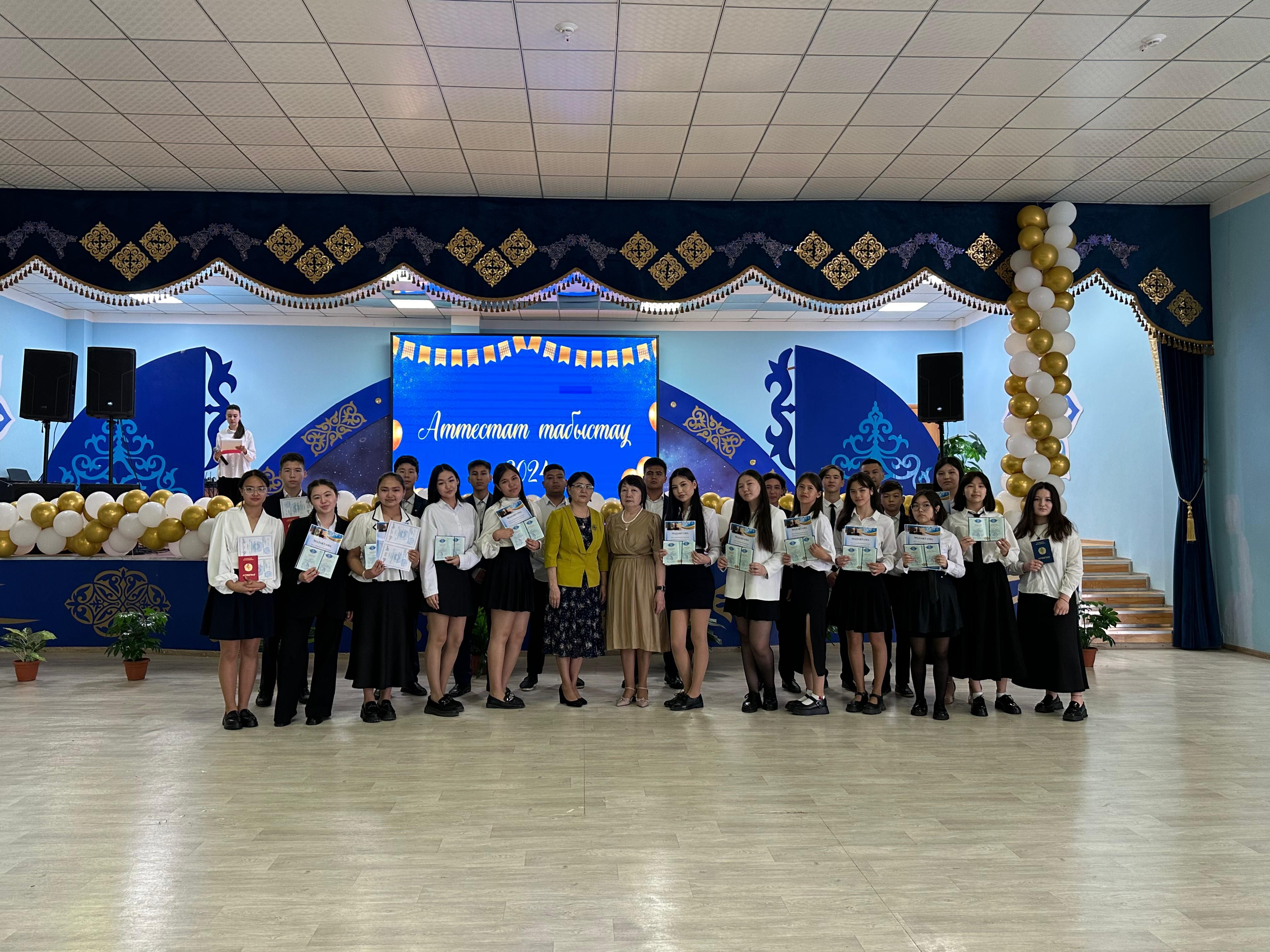 2024 жылдың 12 маусымында мектеп – гимназиямызда негізгі орта мектепті бітіру бойынша аттестаттарды табыстау рәсімі өтті.