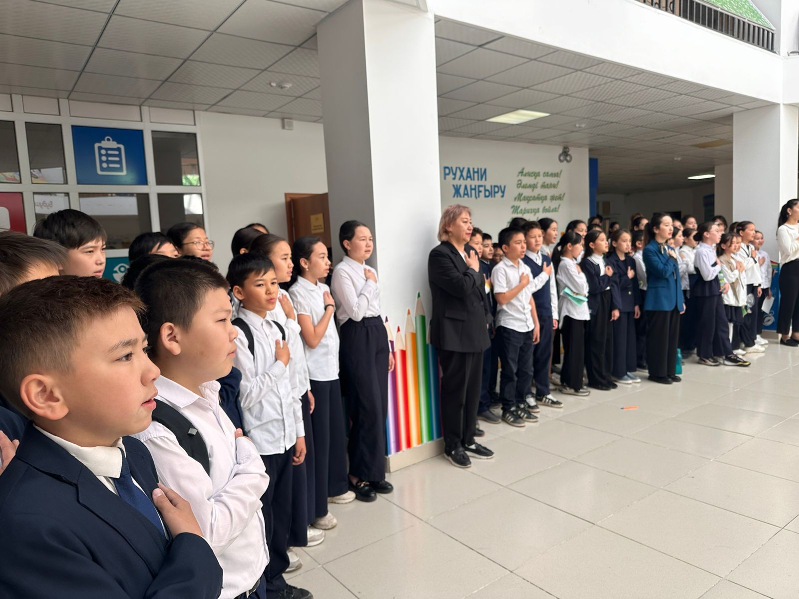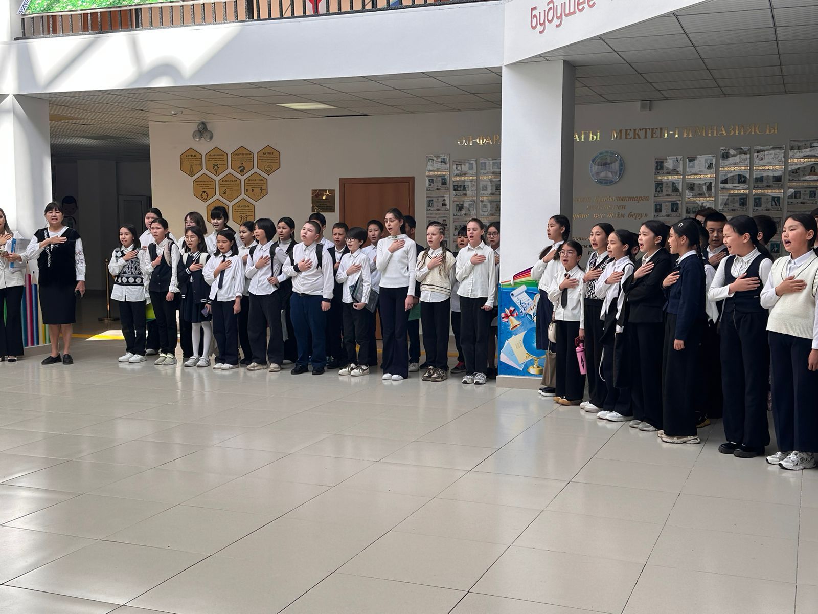 Әл-Фараби атындағы мектеп -гиназиясында" 2024 жылдың 27 мамыр күні 5-8, 10 сынып оқушыларына арналған қазақ тілінен емтихандар және жазғы мектеп жұмысы салтанатты жиынмен ашылды.