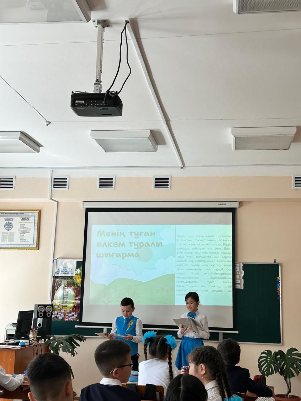 2024 жылдың 6 мамыр күні 2 "Ә" сынып оқушылары 7 мамыр - Отан қорғаушылар күні мен 9 мамыр - Жеңіс күніне арнап "Отан - рухы биік, асқақ ұғым!" тақырыбымен тәрбие сағатын өткізді…