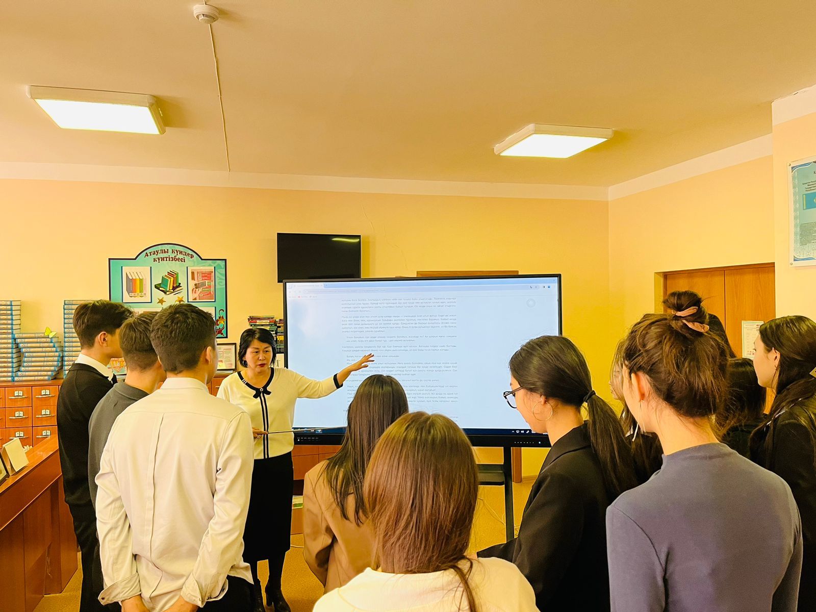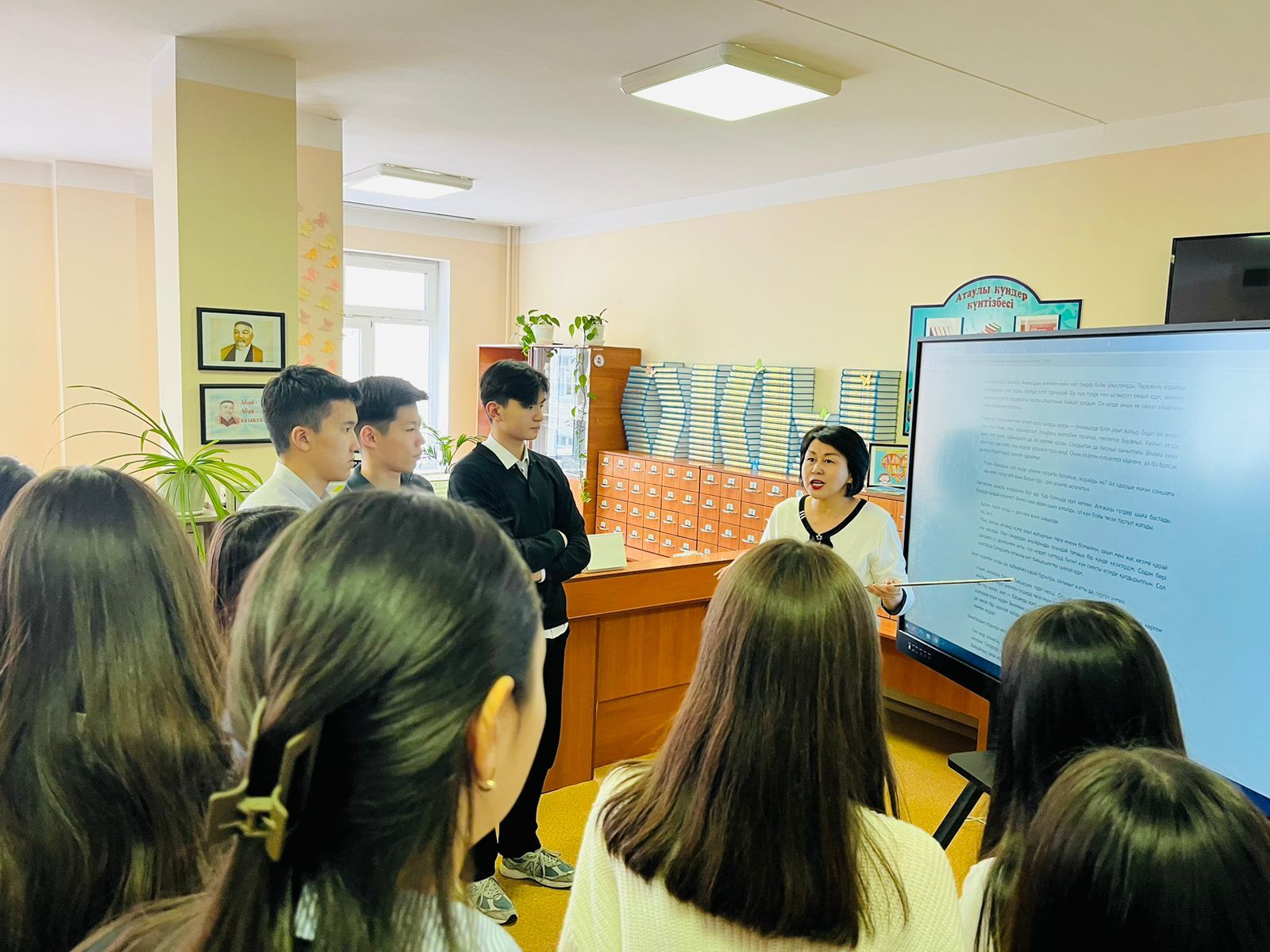 9 сәуір күні кітапханада “Оқуға құштар мектеп” жобасы аясында “Бірге кітап оқиық” тақырыбында 10 Б сынып оқушыларымен С.Досжанованың “Анасын іздеген ұл” әңгімесін талқылап, оқушыларға осы әңгіменің аудио нұсқасын үйде оқуға ұсынылды.