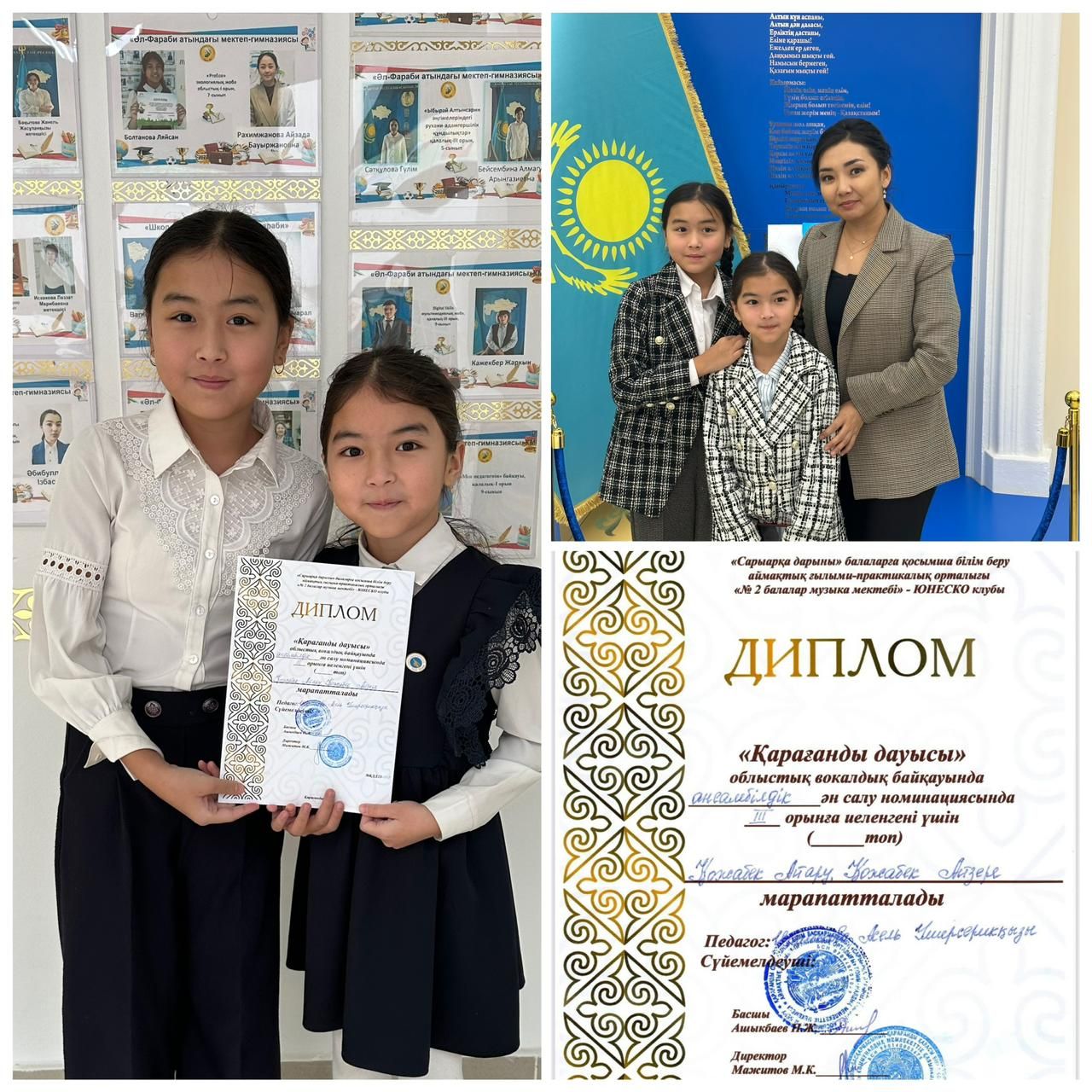 ”Сарыарқа дарыны” балаларға арналған қосымша білім беру аймақтық ғылыми-практикалық орталығымен бірлескен “N 2 балалар музыка мектебі” ЮНЕСКО клубы ҚМКҚ ұйымдастыруымен облыстық “Қарағанды дауысы” ән байқауына мектебіміздің оқушылары Қожабек Айару және Қ