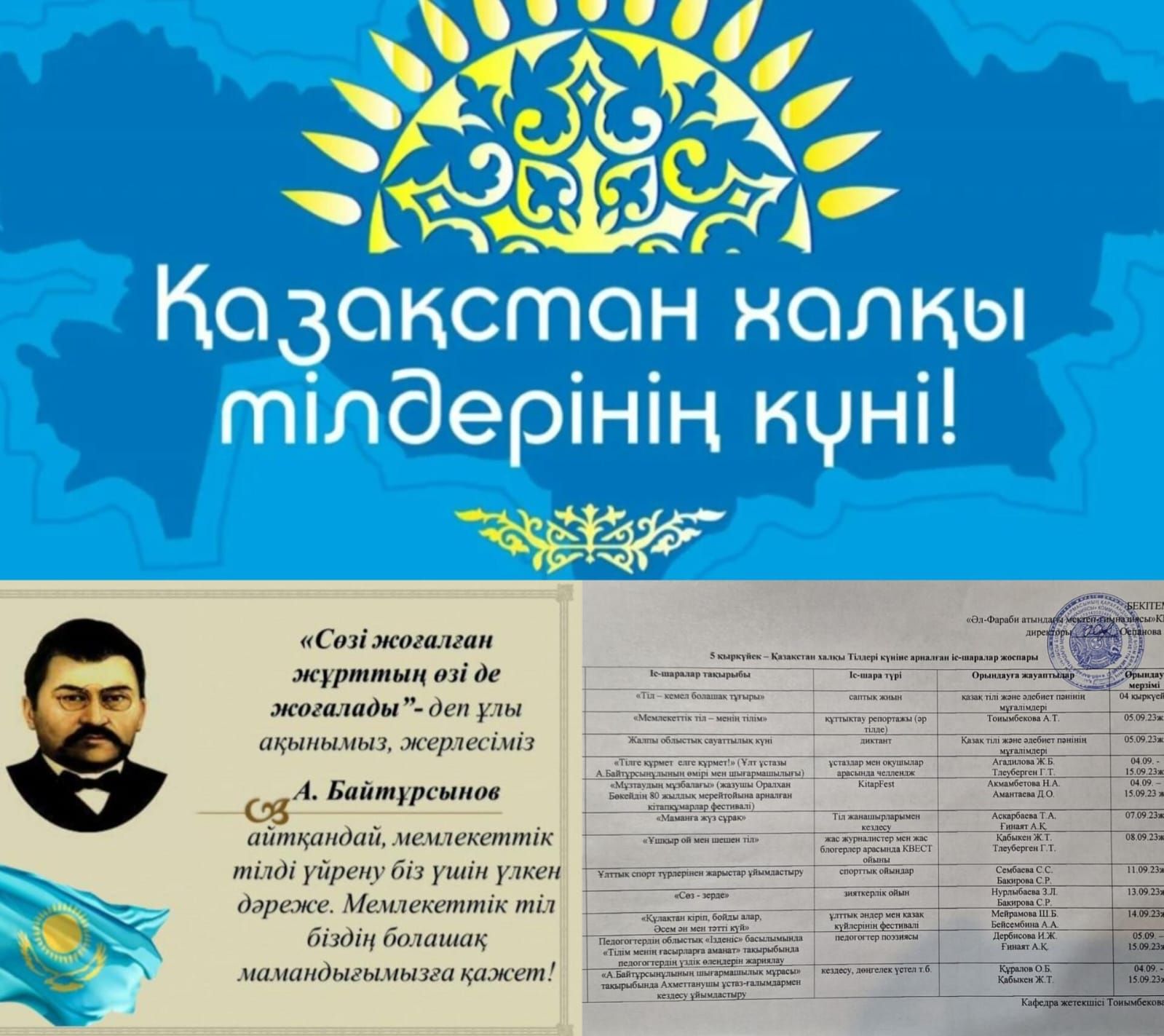 5 қыркүйек Қазақстан халқының Тілдері күніне орай жалпыоблыстық сауаттылық күні болды. Яғни, мектеп оқушыларымен, ұстаздарымен диктант жазылды.