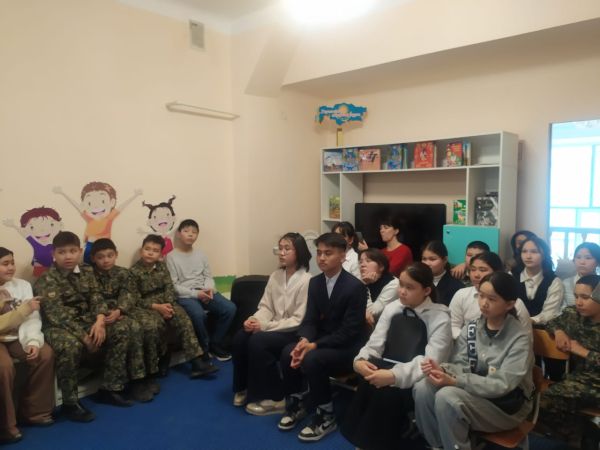 7 А. Ә. В. Г сыныптарымен Абай атындағы Қарағанды облыстық балалар кітапханасында "Ықылас - қобыздың атасы" атты музыкалық портфолио кешін тамашаладық.