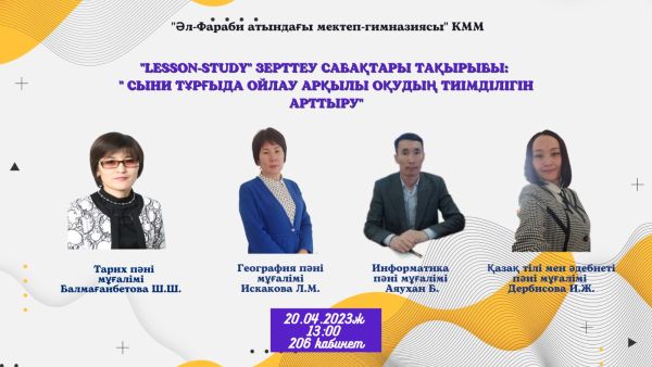 20.04.23ж. Әл-Фараби атындағы мектеп-гимназиясында "LESSON-STUDY" зерттеу сабақтары тақырыбы: "Сыни тұрғыда ойлау арқылы оқудың тиімділігін арттыру" мұғалімдерге арналған с…