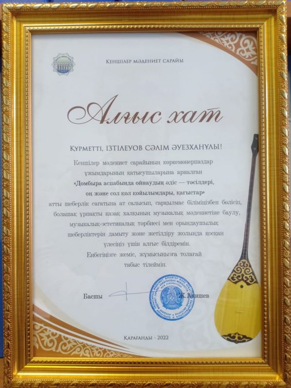 24.01.2022 жылы домбыра сыныбының оқытушысы Рысбаева Б. М. екінші сынып оқушысы Бигельдинов Айдынмен "Шығарманың көркемдік мәніне көңіл бөле отырып шебер орындау" атты ашық сабақ өткізді.…