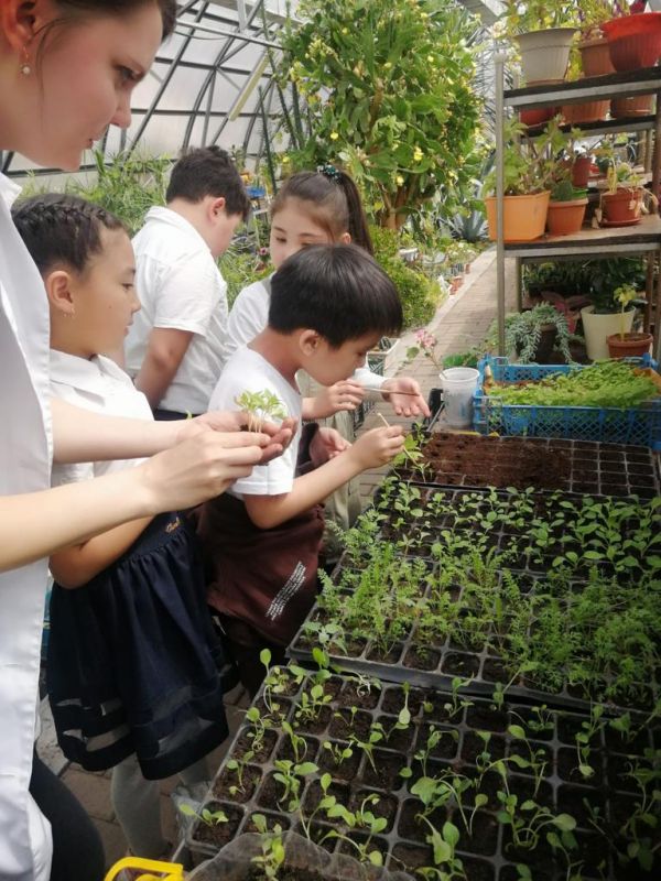 Жас натуралистер станциясының үйірмелерінің қосымша білім беру педагогтері оқушыларымен бірлесіп, «Гүл өскіндерін көшеттеу» тақырыбында практикалық сабақтар өткізді.
