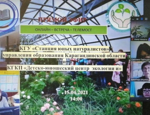 15 апреля 2021 года состоялся телемост между станции юных натуралистов г. Караганды с детско-юношеским центром экологии и туризма г. Павлодара на тему: «Экологическое дополнительн…