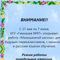 Уважаемые родители и дети, с 27 мая по 7 июня, КГУ «Гимназия #97» открывает работу «Малышкиной школы», для будущих первоклассников, с казахским и русским языком обучения.&nbs…