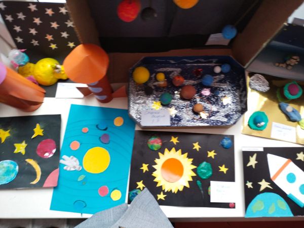 Завершилась неделя предметов ЕМН цикла. Работы учащихся 1-4 классов приняли участие в выставке посвященной Дню Космонавтики