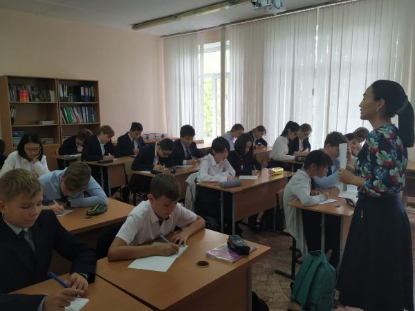 Qazaqstan halqy tilderi kúnine oraı ótkizilgen jalpyoblystyq dıktantqa bizdiń gımnazıanyń 8-11 synyp oqýshylary men ustazdar qaýymy qatysty.