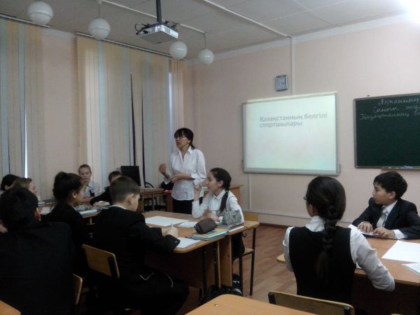 11.02.2015 жылы 7 «В» сыныбында мұғалім Жургимбекова Камария Табынбековна қазақ тілі пәнінен «Қазақстанның белгілі спортшылары» атты ашық сабақ өткізді. Оқушылар бес то…