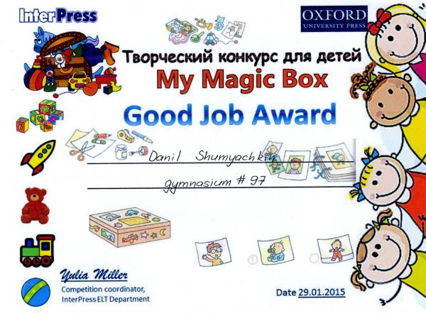 29 января в гимназии № 3 проходил конкурс среди учащихся 3-4 классов «Magicbox». Нашу гимназию представил ученик 3 «В» класса Шумячкин Данил. Данил показал хорошее знание анг…