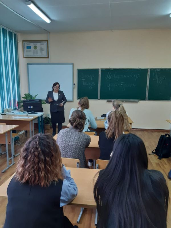 19.02.2020 г в рамках недели Финансовой Грамотности в гимназии состоялась встреча учащихся с представителем компании по страхованию жизни "Halyk Life" Сайтмуратовой Рахимой Абдулхами…