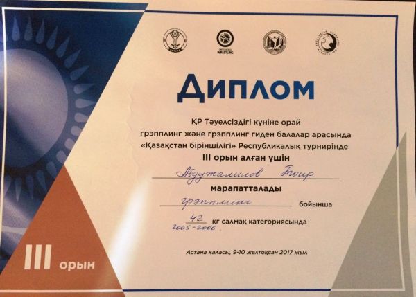 Поздравляем ученика 6 «А» класса Ахметова Даира с победой в чемпионате г. Караганды по киокушинкай карате (1 место). Желаем дальнейших успехов!