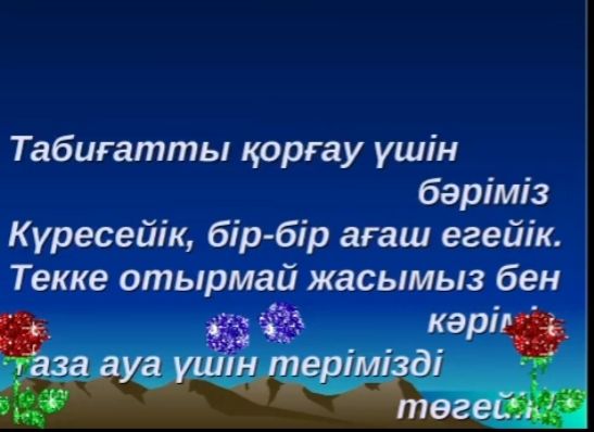 Мақсаты:​ Оқушылардың қоршаған ортаға деген махаббат құндылықтары жайлы түсініктерін кеңейту.Шығармашылық қабілеттерін, жақсылық жасай білу іскерліктерін, ойлау қабілетін дамыту, өз ойын еркін жеткі…