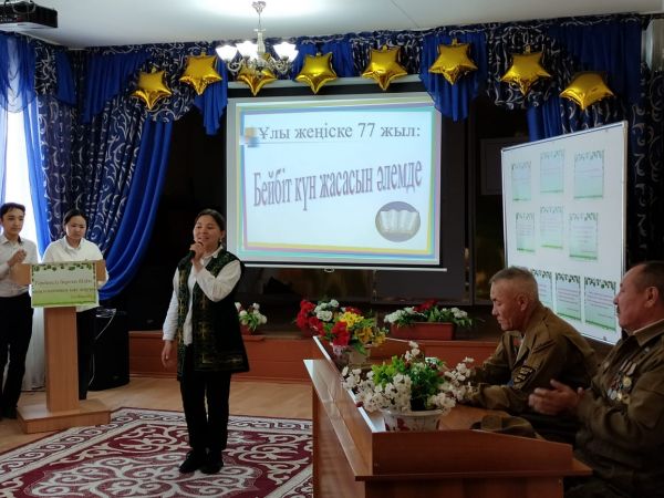 "Саптық және ән байқау"сайысында 10ә сыныбы1орынға иеленіп,топтың басшысыЖарылқасын А