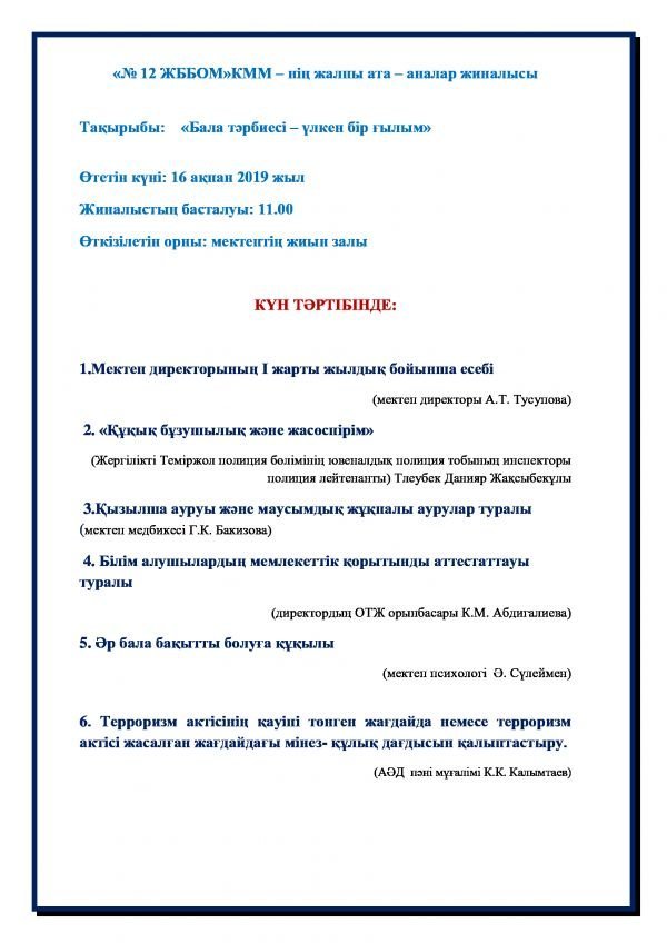 «ЖАЛПЫ АТА – АНАЛАР ЖИНАЛЫСЫ!!!»