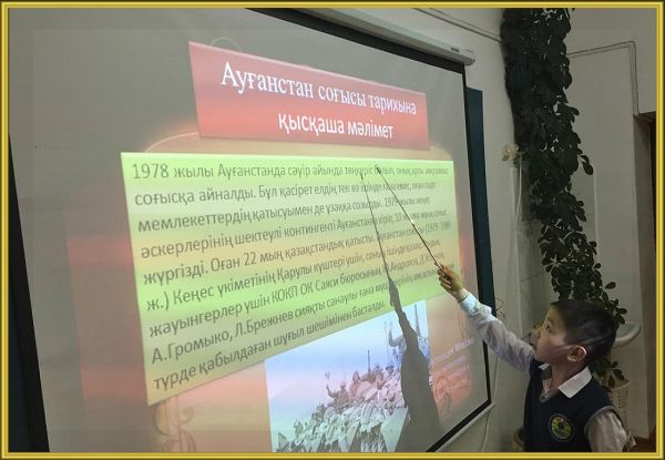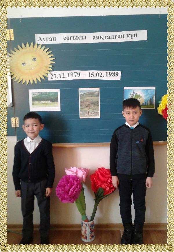 2 «А» сыныбында «Ауған соғысы аяқталған күн» тақырыбында сынып сағаты өтті. Мақсаты: Еліміздің ауған соғысы ардагерлерінің мерекелерін атап өту қарсаңында ауған ақиқатында жә…