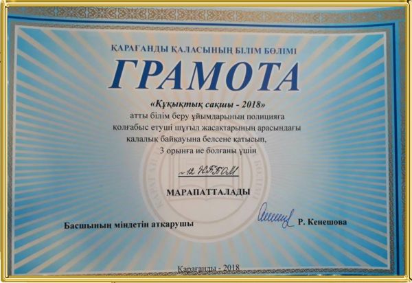 «Құқықтық сақшы-2018». Құттықтаймыз!!!