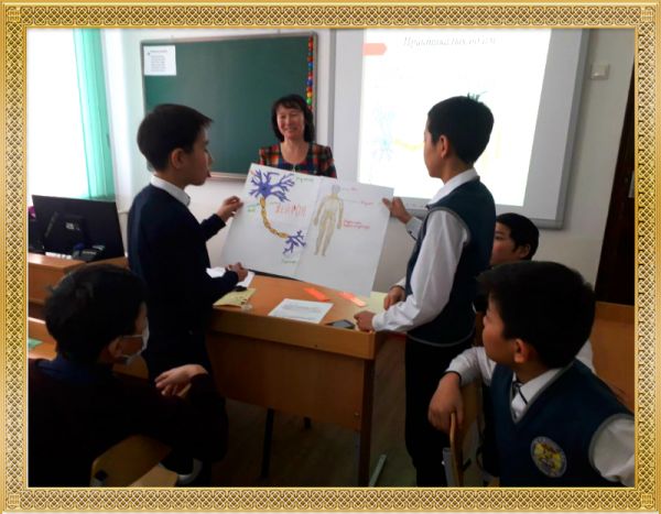 08.02.18 күні А.Н.Кожаева 7«А» сыныбында биология пәнінен «Жүйке жүйесінің қызметі Нейрон қызметі. Нейрон құрылысы: дендриттер, аксон» тақырыбында ашық саба…