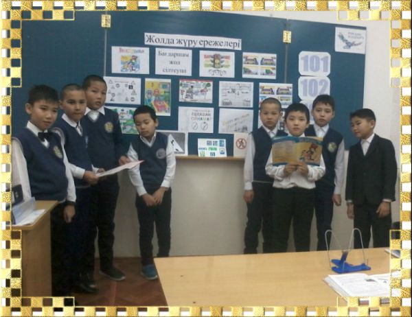 4 в сыныбында Жолда жүру ережелері атты сынып сағаты өтті. Мақсаты: Оқушылардың өмір қауіпсіздігін сақтау, жол ережелерін мұқият орындау, бағдаршам бар жерде де жоқ болған жағдайда да абайлап өтуді…