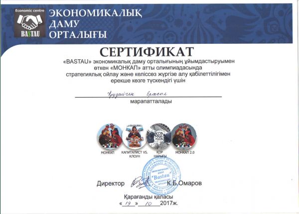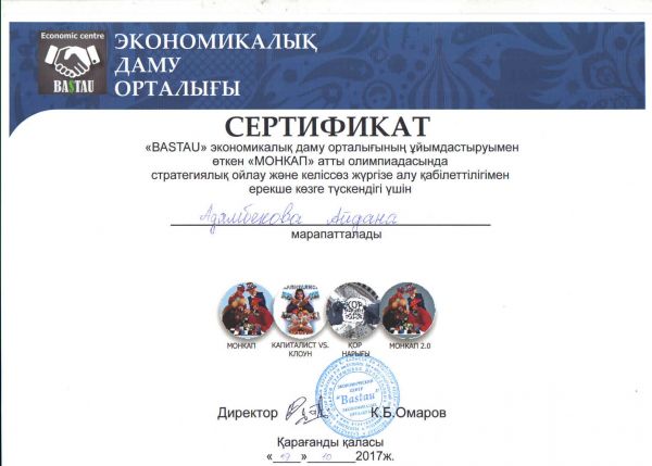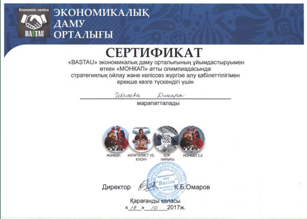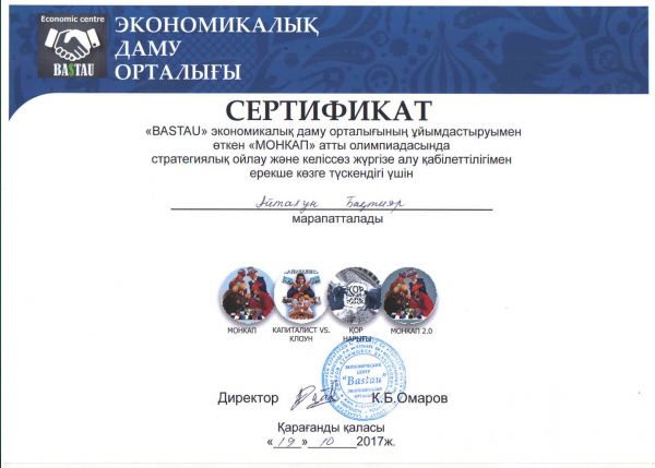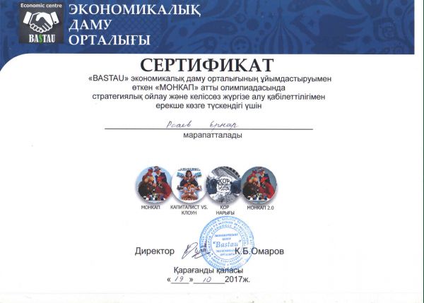 "BASTAU" экономикалық даму орталығының ұйымдастыруымен өткен "МОНКАП" атты олимпиадасына мектебімізден 20 оқушы қатысып, стратегиялық ойлау және келіссөз жүргізе алу қабілеттіліг…