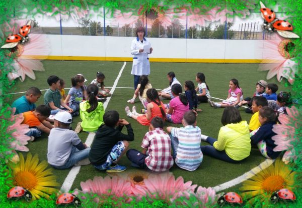 6 маусым күні мектеп алаңында «Балауса» жазғы сауықтыру лагерінің демалушыларына мектеп психологы А.Аубакирова тре…