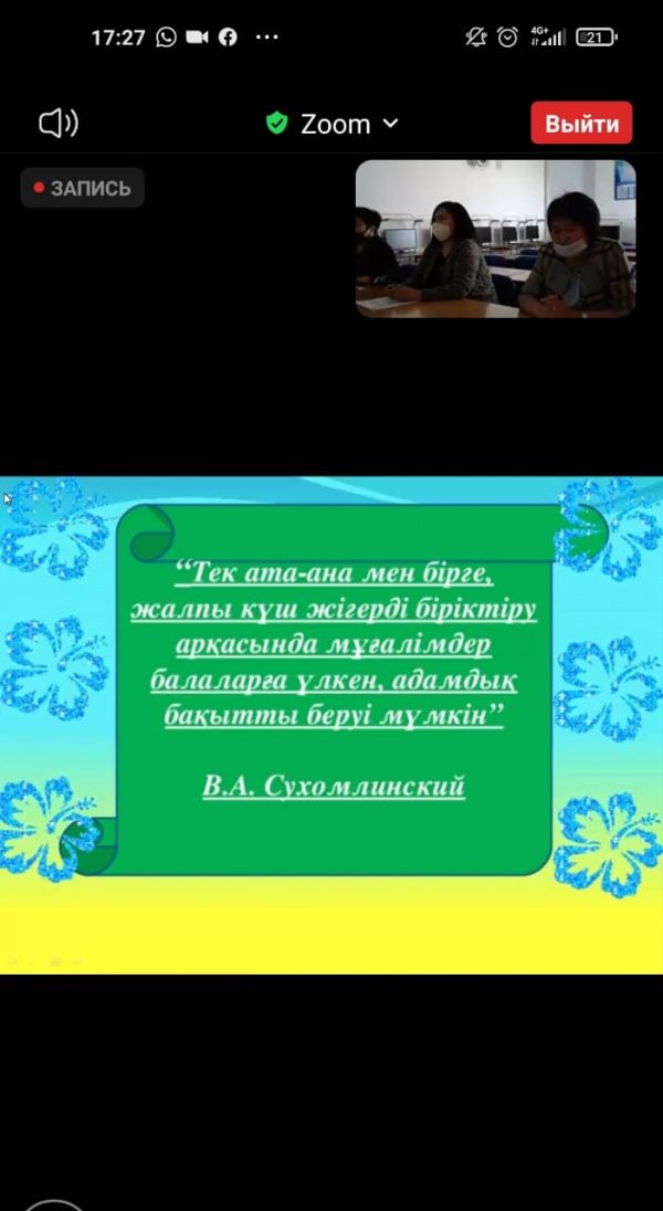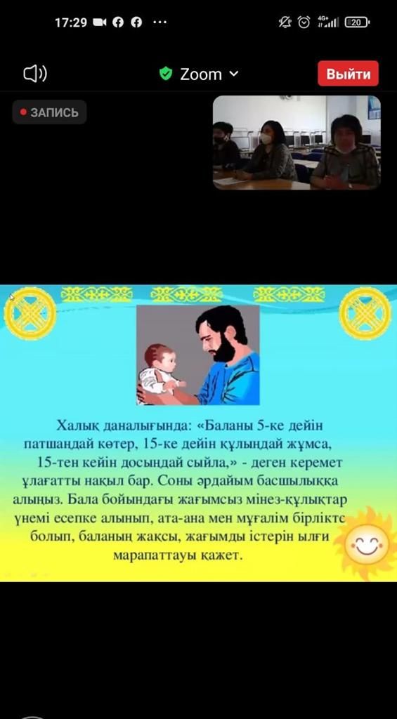 13 мамыр күні «Ұрпақ тәрбиесі – болашақ тірегі» тақырыбында онлайн (ZOOM) жалпы мектепішілік ата-аналар жиналысы өтті.