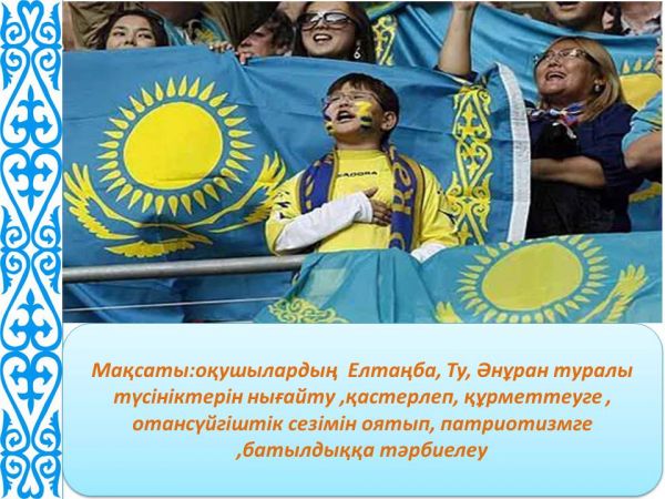 Мемлекеттік рәміздер – Ту, Елтаңба және Әнұран Қазақстан Республикасының дербестігі мен тәуелсіздігін бүкіл әлемге танытушы әрі мемлекетіміздің өткені мен бүгіні және болашағы арасындағы сабақ…
