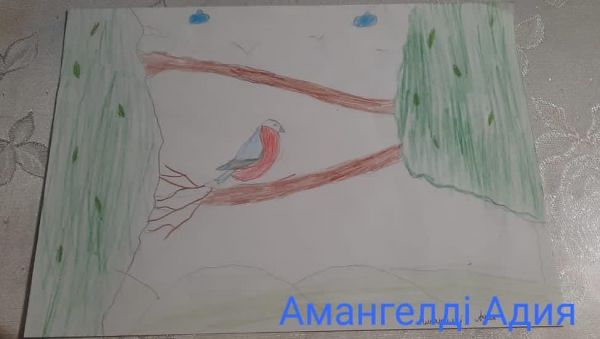 Республикалық бірыңғай "Жас Ұлан" ұйымының ұйымдастыруымен "Құстар әлемінде" онлайн сурет көрмесіне 4"А" сынып оқушысы Амангелді Адия  қатысып жатыр.