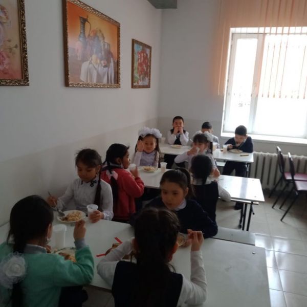 Қарағанды қаласының жалпы білім беру ұйымының оқушыларды ыстық тамақпен қамтамасыз ету туралы бұйрығы негізінде 1"Ә" сынып оқушылары жер шілікті бюджет есебінен ыстық тамақ ішіп жүр.