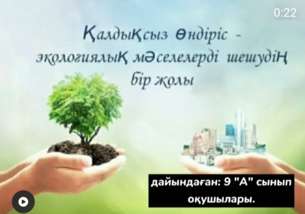 "Менің өмірімнің эко мектебі' республикалық  конкурсының шеңбері аясында 9А сыныбында "Өндіріс қалдықтары"тақырыбында сынып сағаты өтті. Мақсаты;Қоршаған ортаны ластанудан…