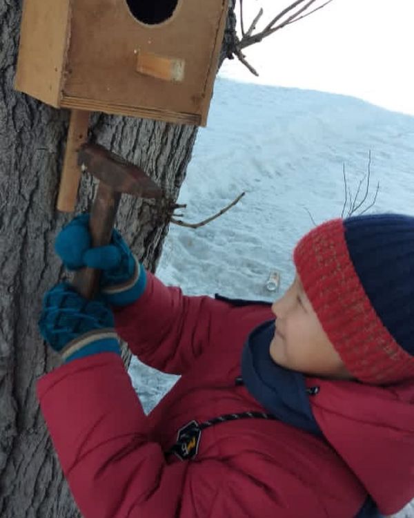 Көктемгі демалыс кезінде 2"Ә "- сынып оқушылары Нұрлыбаев Дамир мен Аманжан Әл Арназ әкелерімен бірге "Құстар күніне" арнап құстарға ұя жасап,оған құстар ұя салсын деп ағашқа бек…
