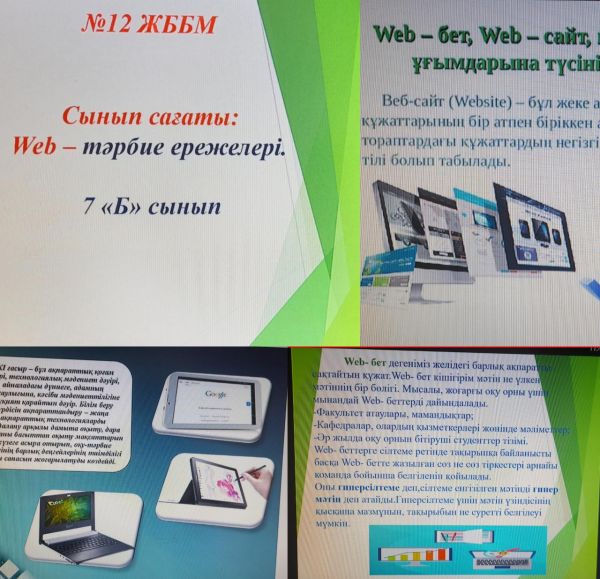 "Цифрлық әлем" ақпараттық сауаттылықты дамыту апталығы аясында 7 "Б" сыныбында "Web - тәрбие ережелері" атты сынып сағаты өтті.