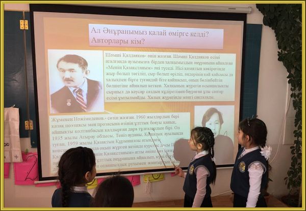 30.01. күні 1А сыныбында сынып сағаты өтті. Тақырыбы:«Қазақстан Республикасының ұлттық рәміздерінің авторлары» Мақсаты: 1. Оқушыларды аса маңызды мемлекеттік белгілер - рәміздермен жан -…