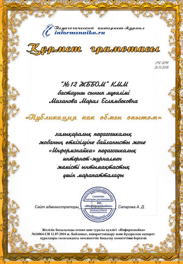 07.12.18 күні 7А сыныбында Бүкіләлемдік «Комьютерлік ғылым апталығы» аясында өткен «Қазақстандағы Кодтық сағат» акциясының өтілуіне байланысты сынып сағаты өтті.