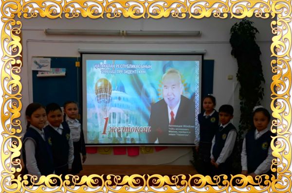 Мектеп кітапханасында 1-желотқсан – тұңғыш Президент күніне орай 3 «А» сынып оқушыларымен «Елімен – бірге Елбасы» тақ…