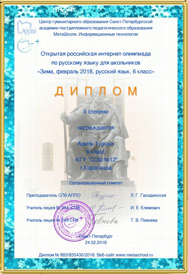 Нашу школу представляли 4 учащихся: Аугамбаев…