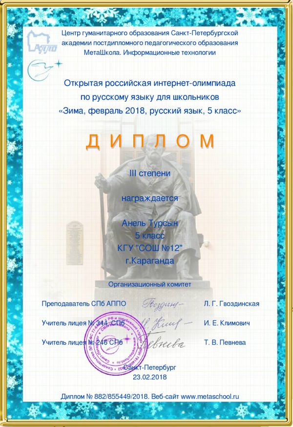 Работа с одарёнными учащимися предполагает участие в различных интеллектуальных конкурсах, олимпиадах, в том числе дистанционных. Так, например, наши учащиеся участвовали в Открытой рос…