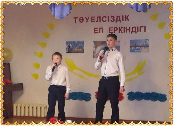 4 в сыныбында Тәуелсіздік таң нұры атты сынып сағаты болды. 1986 жылғы Желтоқсан оқиғасы "Тәуелсіздік алғанымызға 26 жыл толғаны жайында мағлұмат берілді. Сол сұрапыл жылдардағы ел қорғаған жас…