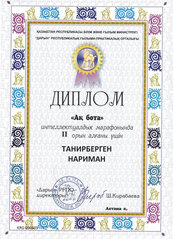 2017-2018 оқу жылында №12 ЖББОМ бойынша "Ақ бота" интеллектуалдық марафонында 50 оқушы жүлделі орынды иеленді. Жүлдегерлерді мектеп ұжымы атынан құттықтаймыз!