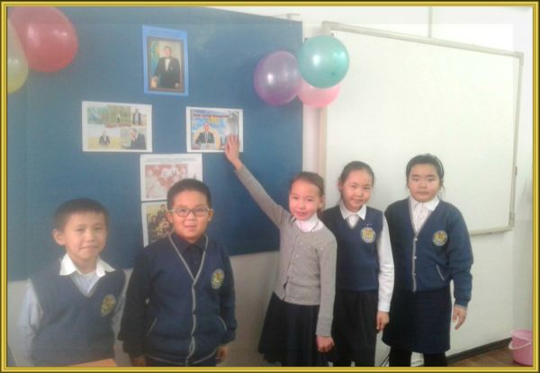 1 желтоқсан президент күніне орай 4 «Б» сыныбында ашық тәрбие сағаты өтті. Ашық тәрбие сағатының тақырыбы: «Менің тұңғыш президентім». Мақсаты: