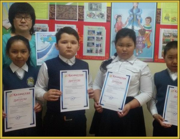4 «А» сынып оқушылары «Қазақстан Ұстаздары» қоғамымен ұйымдастырған қазақ тілі пәні бойынша республикалық қашықтық олимпиадаға қатысып, жоғары көрсеткіштерді иеленгені үшін І…