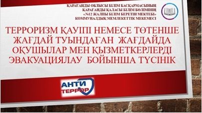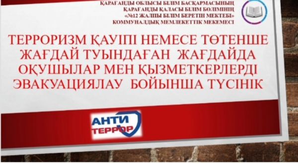 "ТЕРРОРИЗМ ҚАУІПІ НЕМЕСЕ ТӨТЕНШЕ ЖАҒДАЙ ТУЫНДАҒАН ЖАҒДАЙДА ОҚУШЫЛАРДЫ ЭВАКУАЦИЯЛАУ БОЙЫНША ТҮСІНІК"