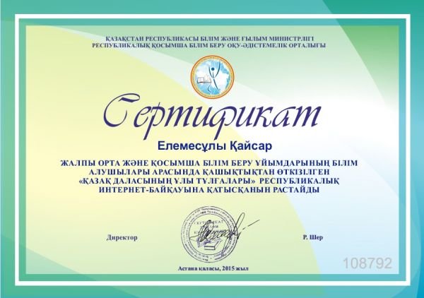 Астана қаласы «ZIAT» Ғылыми-әдістемелік орталығымен ұйымдастырылған қашықтықтан өткізілген «Жаңа педагогикалық идеялар» атты II Республикалық сыныптан тыс іс-шаралар са…