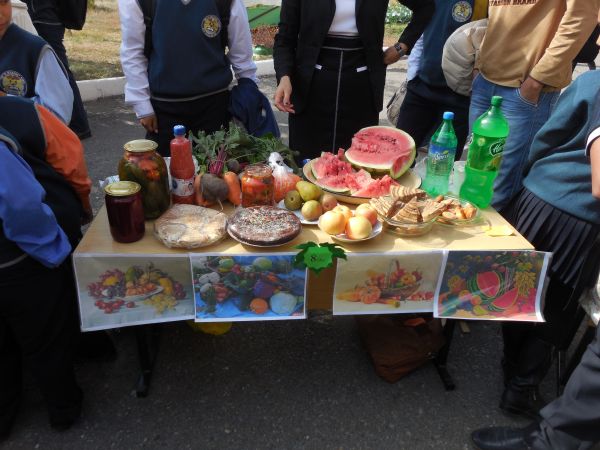 19 қыркүйек күні мектеп алаңында ата-аналардың қатысуымен күзгі жәрмеңке ұйымдастырылды. Белгіленген орындарда әр сыныптар өздері дайындап әкелген азық-түліктерін қойып, жеміс –жидектер мен кө…
