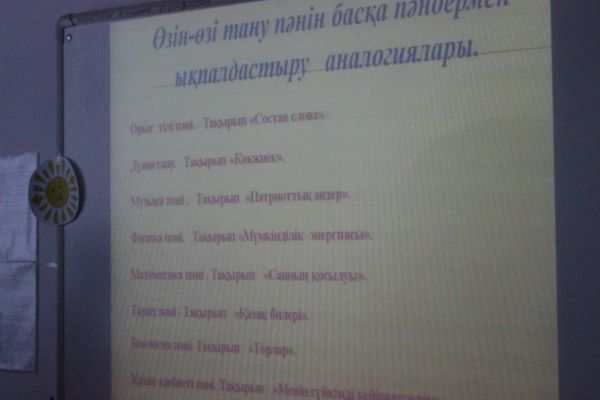 09.12.2014 ж. «Өзін-өзі тану пәнінің элементарын басқа пәндермен байланыстыру технологиясы » атты мастер-класс ұйымдастырылды. Мектепшілік шара жақсы деңгейде өтті .