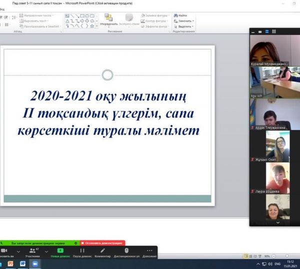 ZOOM платформасы арқылы " Сапалы білім - саналы ұрпақ азығы " тақырыбында №4 педагогикалық кеңес өтті.