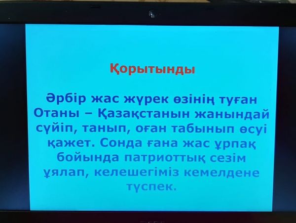 18.01.2021ж. 8 "А" сыныбында "ХХІ ғасыр сауатты ұрпақ" тақырыбындағы оқу сауаттылық апталығы аясындағы "Жалынды жастар-жарқын болашақ" онлайн сынып сағаты өткізіл…