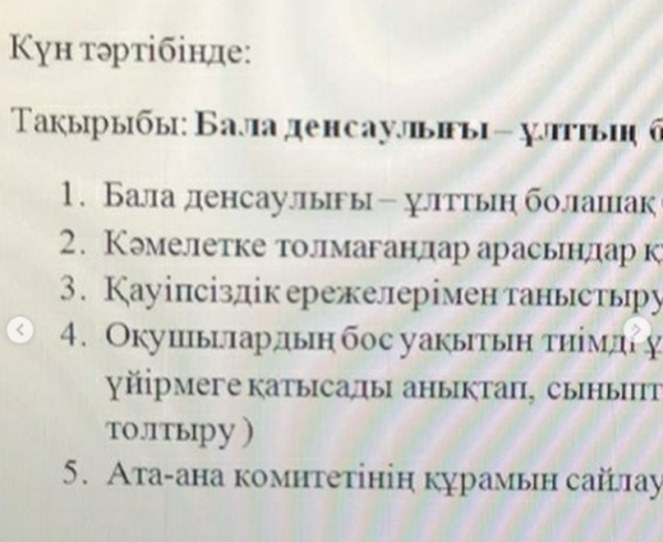 "Бала денсаулығы - ұлттың болашақ байлығы" тақырыбында 7"Б" сыныбында онлайн ата-аналар жиналысы болып өтті.